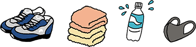 動きやすい服装 ・室内用の運動靴・タオル ・お飲み物・マスク